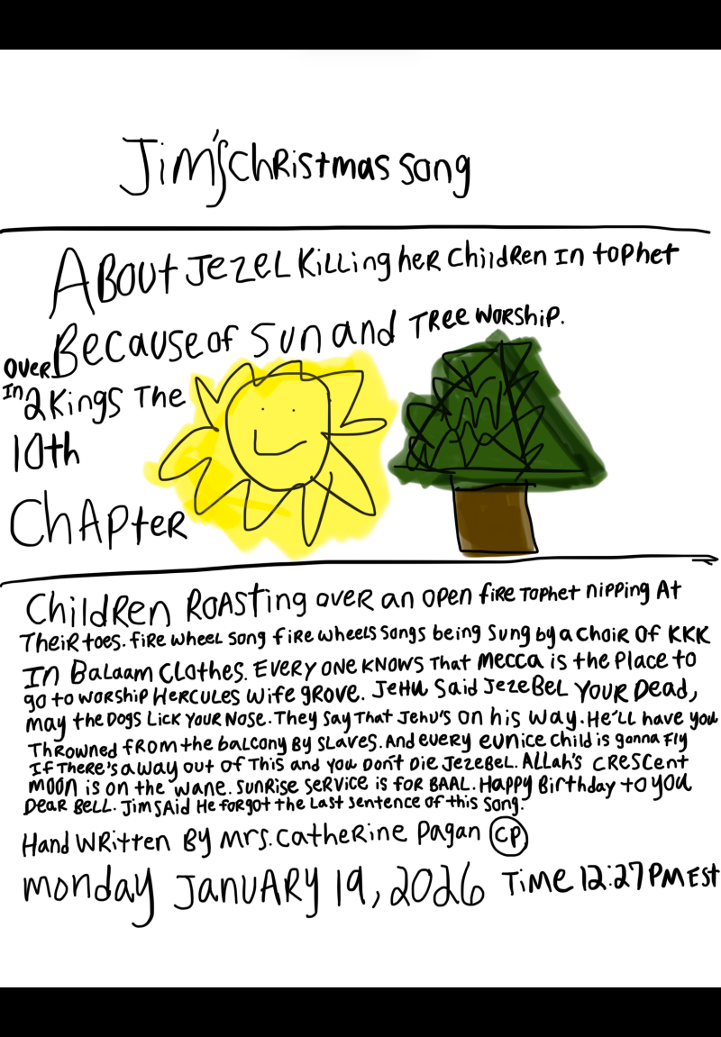 Jim’s Christmas Song About Jezebel Killing her Children In Tophet because of Sun And Tree Worship